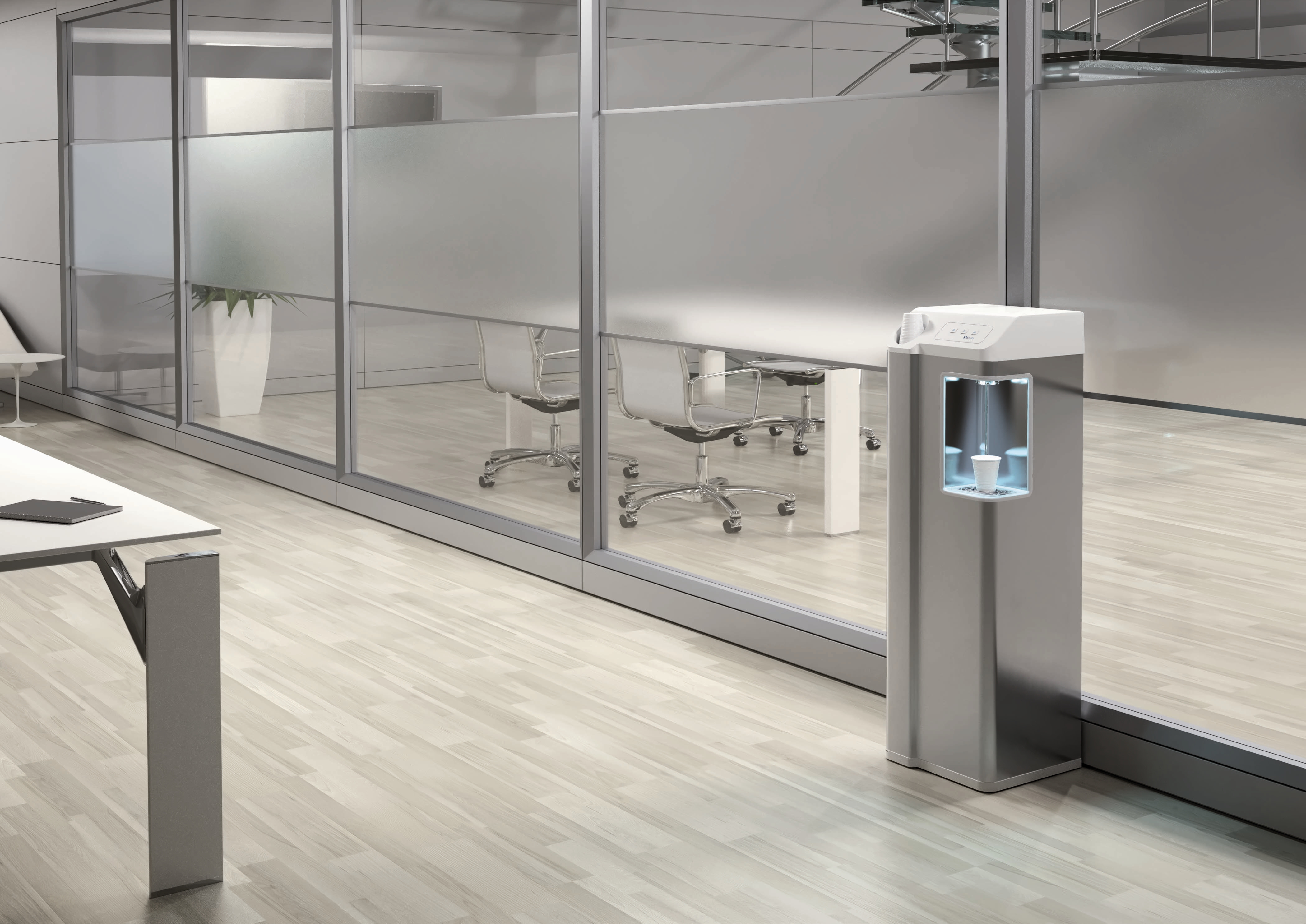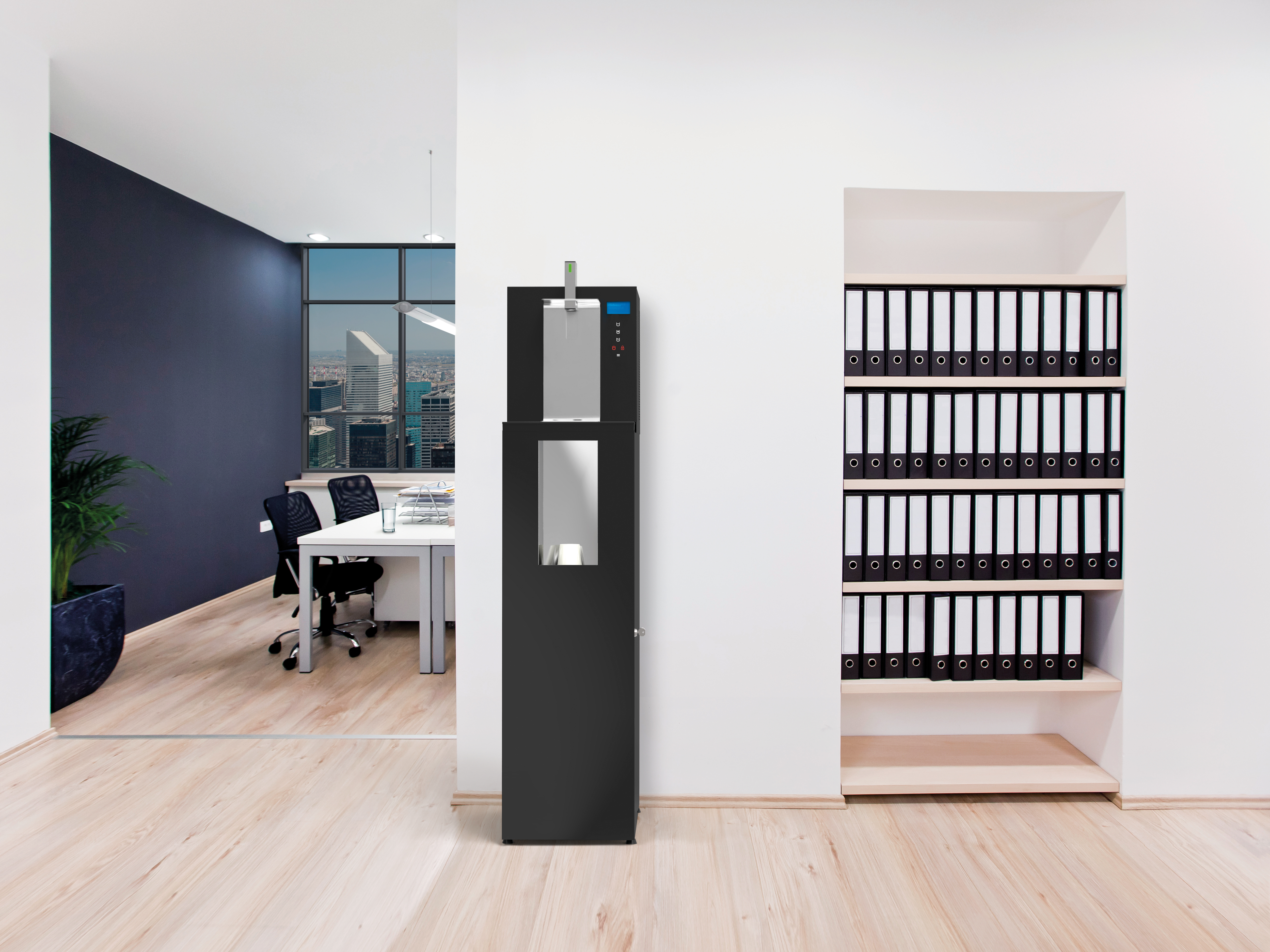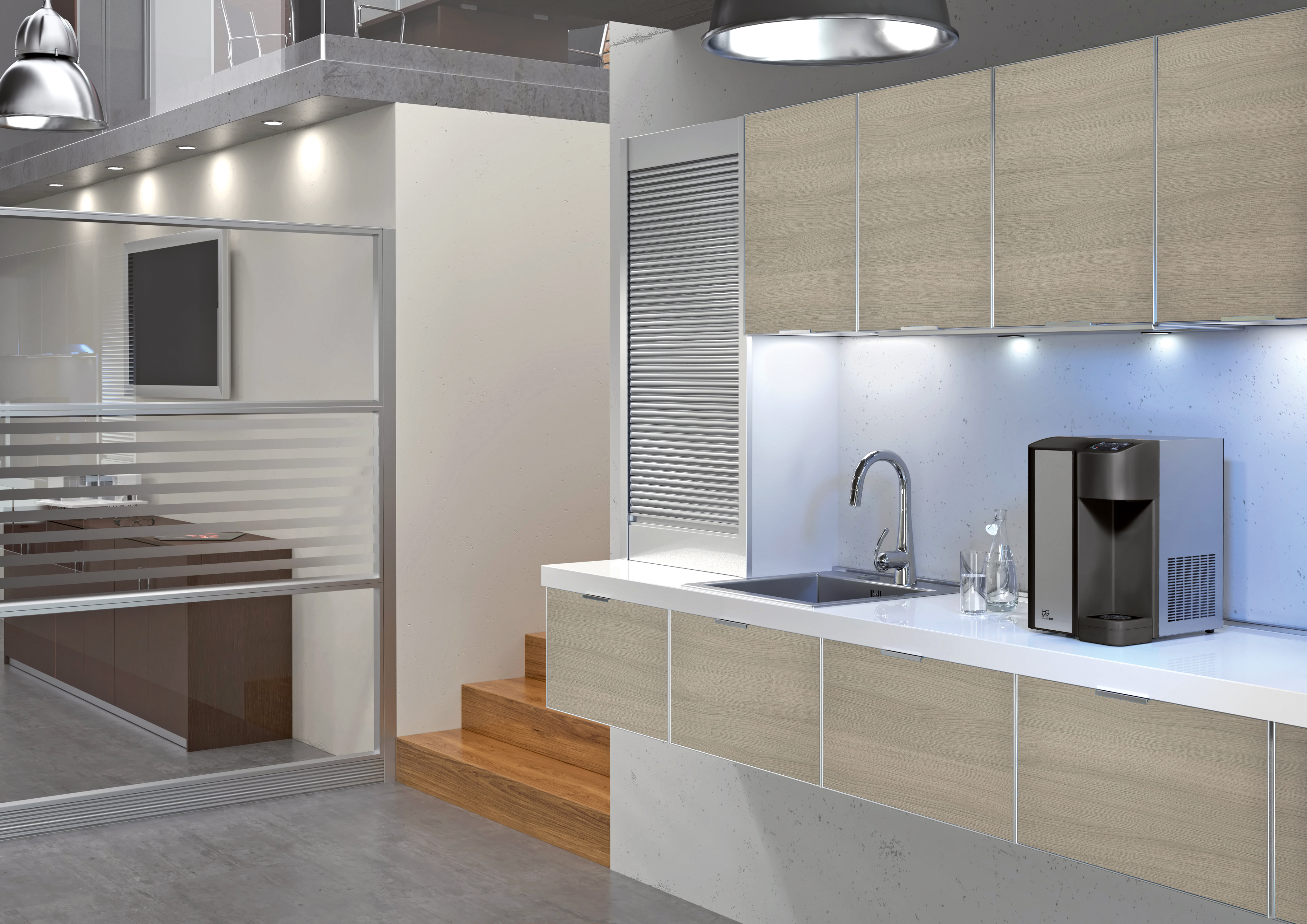 Gli impianti sono semplici, di design, e funzionali. Dispongono di dispenser per bicchieri e spazi appositamente ideati per accogliere le bombole e il sistema filtrante, senza avere tubi o fili che intralciano il vostro lavoro.